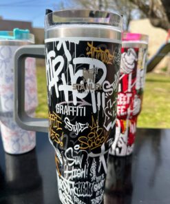 Estampados de diferentes colores y formas, contienen una capacidad de 1200ml apto para cualquier estilo de bebida fria o caliente.