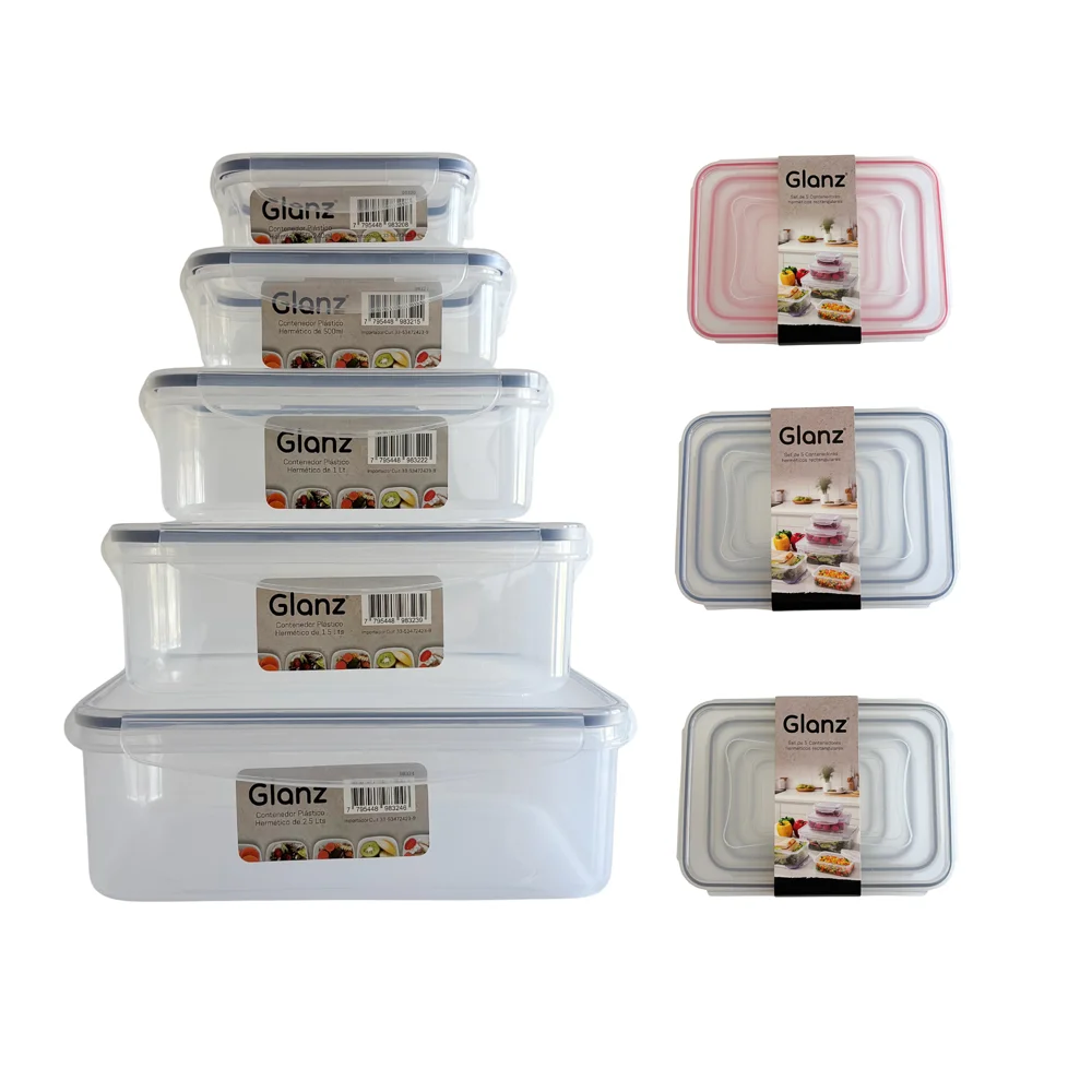Set x 5 hermeticos rect. glanz tapa clip ( 98337 )