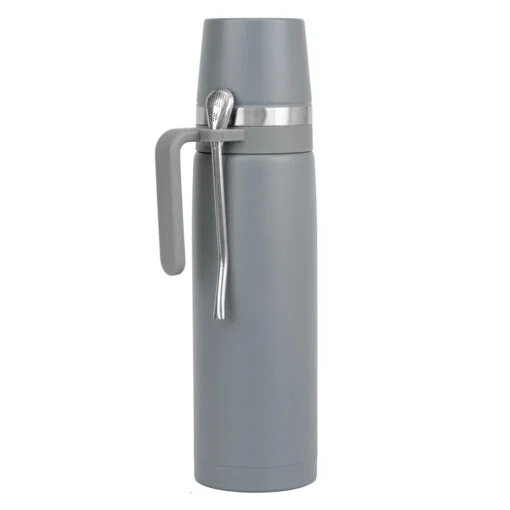 Termo ac.1lt c/bombila 1/2 manija gris(43165)