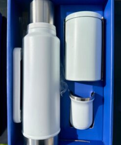 Este set contiene un termo de 1200cc de capacidad, que mantiene el agua caliente por horas.