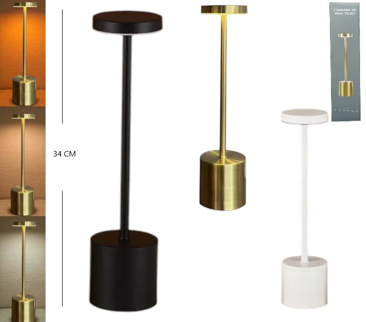 Velador touch blanco, negro dorado